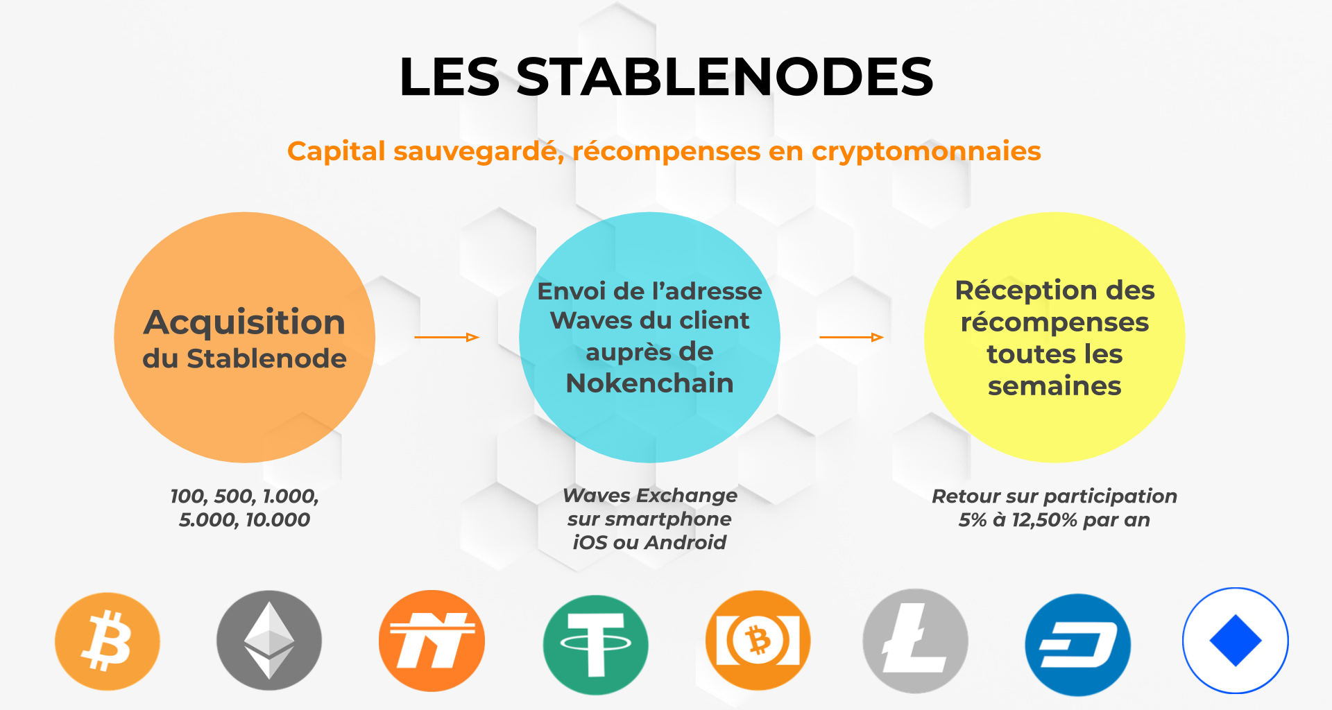 Indeed NOKENCHAIN ​​is revolutionizing this concept by making Stablenodes available to all budgets (from €50). The returns of Stablenodes vary between 4% and 12.5% ​​per year, while safeguarding your capital in the USD currency !
